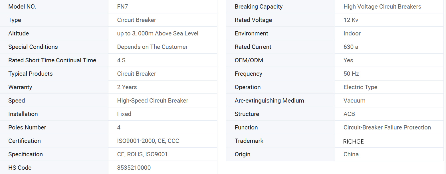 Întrerupătorul de sarcină de înaltă tensiune AC FN7-12 este un nou tip de întrerupător de sarcină de înaltă tensiune pentru interior care produce gaz. Este potrivit pentru sistemele de alimentare trifazate AC cu AC 50Hz și tensiune nominală de 12kV. Este utilizat pentru întreruperea curentului de sarcină și închiderea curentului de scurtcircuit.